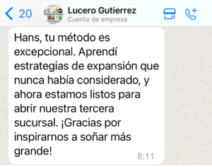 Vas a aprender el método probado por más de 400 PYMES mexicanas para escalar tus ventas, saber cómo expandir tu negocio, optimizar tu flujo de efectivo, y forjar equipos de alto rendimiento.