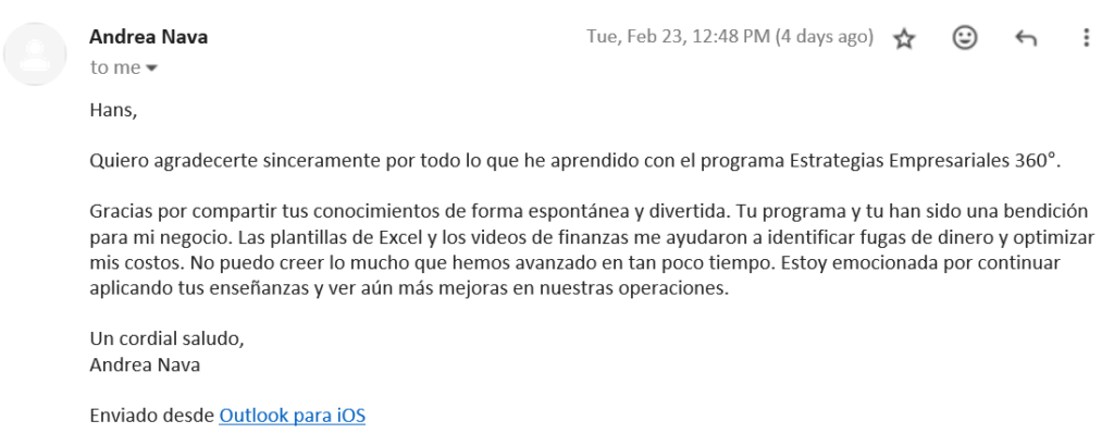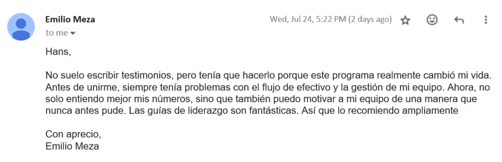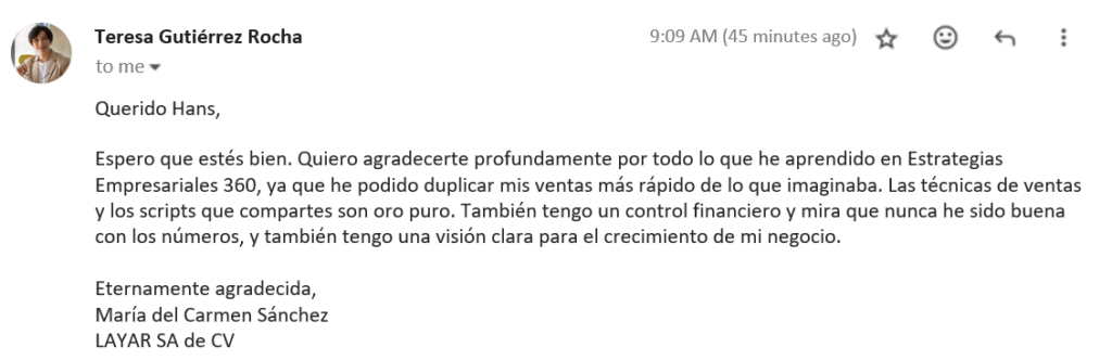 Alguna vez, uno de mis clientes comentó que había probado otros programas sin éxito. Estoy totalmente de acuerdo, yo mismo he comprado decenas de ellos y sé que la mayoría ofrecen soluciones genéricas y superficiales que no se adaptan a las necesidades específicas de tu negocio. Por eso, diseñé Estrategias Empresariales 360 con un análisis profundo, utilizando estrategias que he implementado personalmente para transformar más de 400 PYMES.